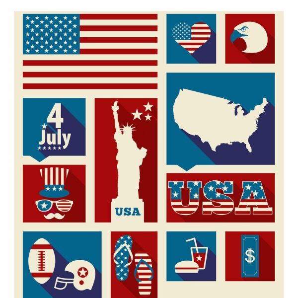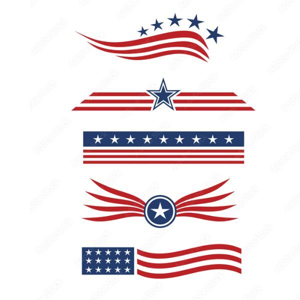 Many logos, destinations and brands belonging to the United States of America with the character of the American flag and stars of different types are suitable for use in many companies and brands.